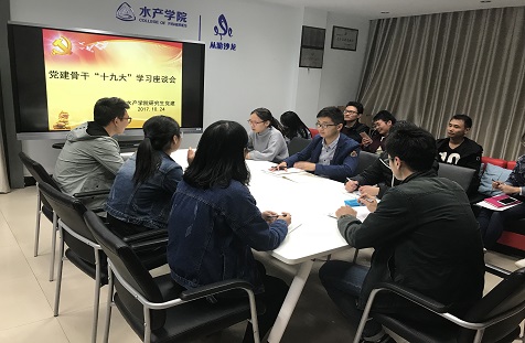 伟德国际VICTOR1946研究生党建骨干开展“十九大”学习座谈会 核心提示:10月24日晚,伟德国际VICTOR1946研究生开展全体党建干部十九大学习座谈会,本次会议在水产楼415会议室举办,会议由党建副主任郭红会同学主持。