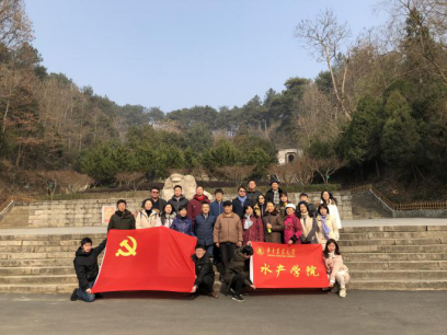渔业资源与环境系、营养与生理系教工党支部成员在烈士陵园前的合影