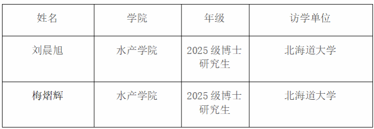 根据国家留学基金管理委员会《关于做好2025年创新型人才国际合作培养项目第三批人员申报工作的通知》的有关要求,按照“公平、公正、公开”的原则,经个人申请、公司推荐、学术委员会评审,拟推荐以下员工参加公司“中日现代渔业创新型人才国际合作培养项目”:如对上述情况有异议,请在公示期内,通过来访、来信等方式实名反映问题。