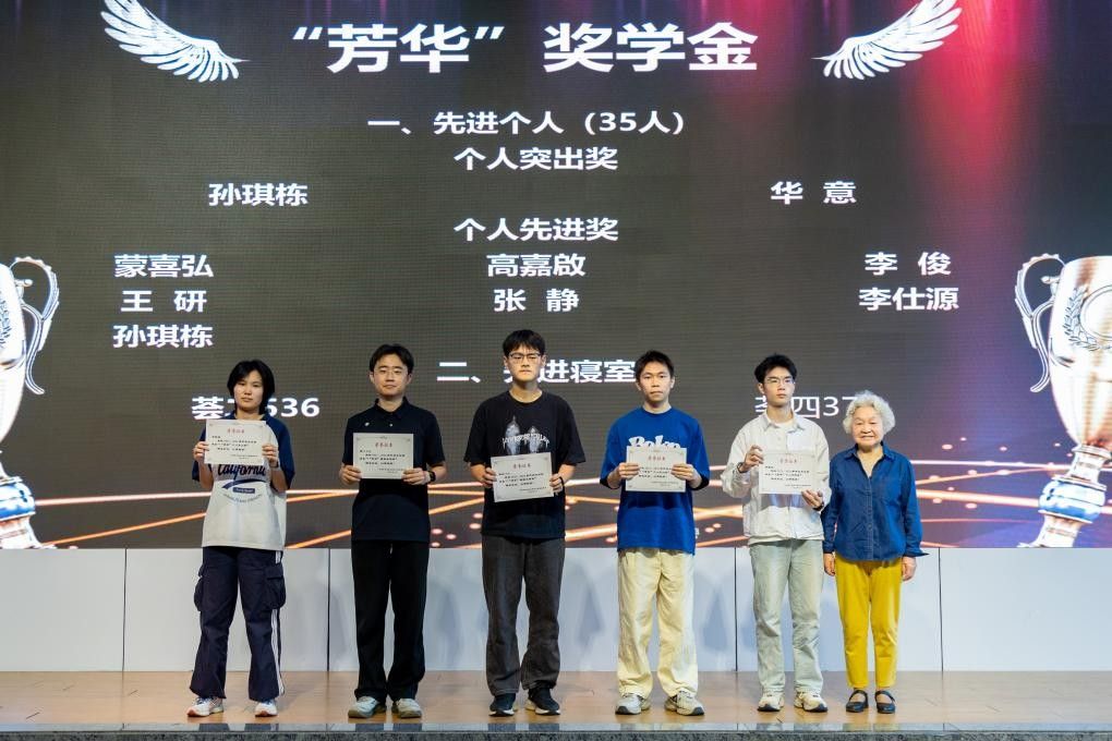 周洁教授代表88级员工陈菊芳、薛华颁发“芳华”奖学金(通讯员 小傅 摄)
