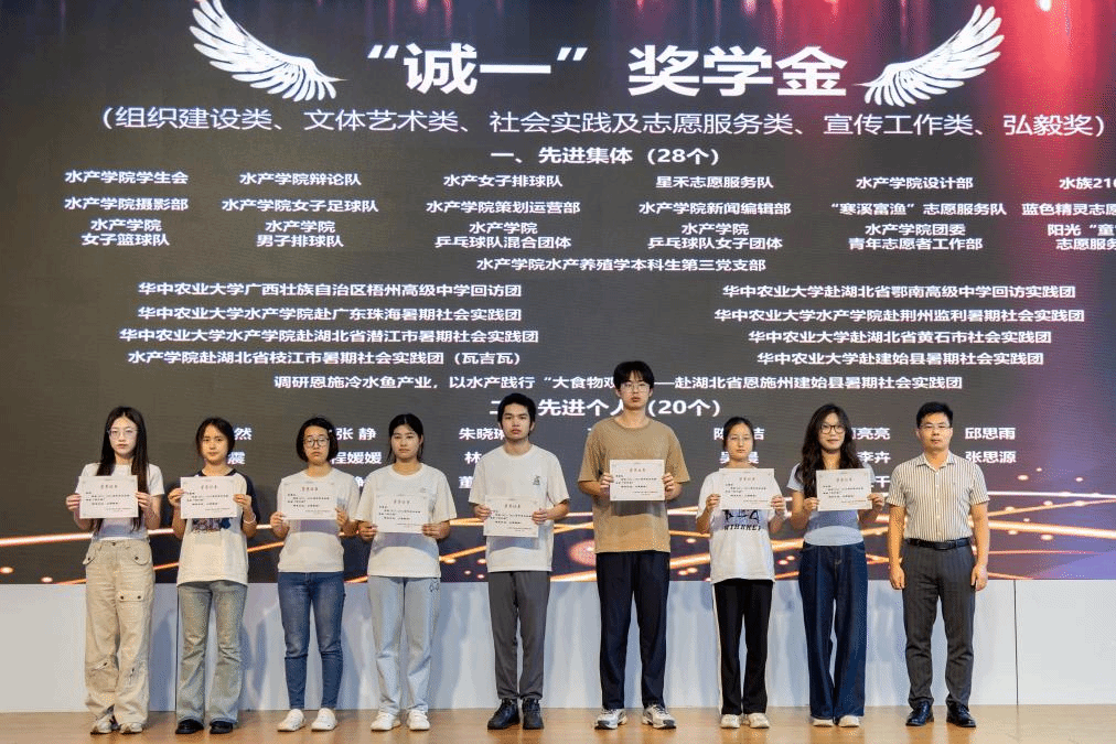 4月26日上午,伟德国际VICTOR19462025年企业奖学金颁奖仪式在图书馆报告厅举行。bv伟德国际1946党委常委、副董事长郭刚奇出席会议并讲话,广东海大集团股份有限公司华中大区生产技术总经理助理刘振兴、广东诚一实业集团有限公司综合部部长陈方定、湖北至正天辰生物科技有限公司销售总监胡边边、通威农业发展有限公司华中二区人行总监高克伟、桂林力源粮油食品集团有限公司荆州漓源水产销售总经理段甲瑞、广东联鲲集团有限公司市场总监杨坤、广州利洋水产科技股份有限公司技术部经理周辉等20余名企业代表参加会议并为获奖员工颁发荣誉证书。退休教授周洁、公司党委副书记曹玉琼、副经理高泽霞、副经理沈继斌等公司师生代表200余人参加会议。公司党委书记秦长平主持仪式。