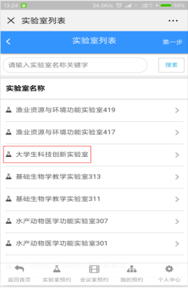 用户可通过实验室(会议室)名称或者编号,查询要预约的实验室或会议室,点击下图的马上预约。