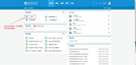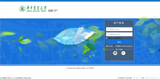 在浏览器输入http://pdc.hzau.edu.cn/ 打开信息门户登录界面输入账号密码后点击“办公系统”进入系统登录页面,如下图所示: