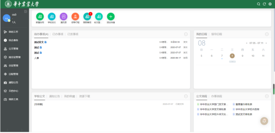 点击“办公系统”,即可进入到办公自动化系统的最终操作界面,如下图所示: