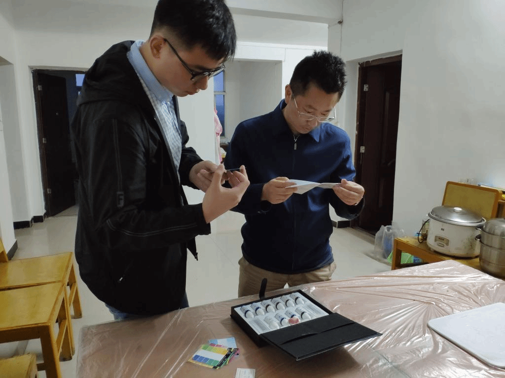刚到武汉科洋生物工程公司时,同学们都很兴奋,但是当时养殖厂的工作并不多,观其情况,魏开建老师便带领员工设计了小实验——“水体营养不同的池塘的水质指标变化的检测”。他对员工们说:“只有真正参与其中,才会对这个行业有最真实的认知。”有了方向,同学们不再迷茫,开始热情似火的投入其中。三口塘,九个采水点,五个指标,每隔三小时监测一次。几天过去了,多次的重复操作让大家又疲又乏,察觉出员工们有些倦怠,魏老师便和员工一起检测,洗、倒、滴、摇,比,一丝不苟,不厌其烦。“大家加油,‘养鱼先养水’,我们获取的这第一手水质指标将会成为后续养殖调水过程的重要参考。”魏开建老师是一位要求严格的指导教师,两天的高频率水质监测结束后,魏老师并没有“放过大家”,而是带着员工巡塘,继续通过观察水色、透明度、水生植物生长情况等监测各塘状态。此刻,他不仅仅是一名大学老师,更是一个兢兢业业的水产工作者。他言传身教,带领员工走塘口、测水质,了解水产行业基层,研讨养殖大环境,真正让员工学有所用。
