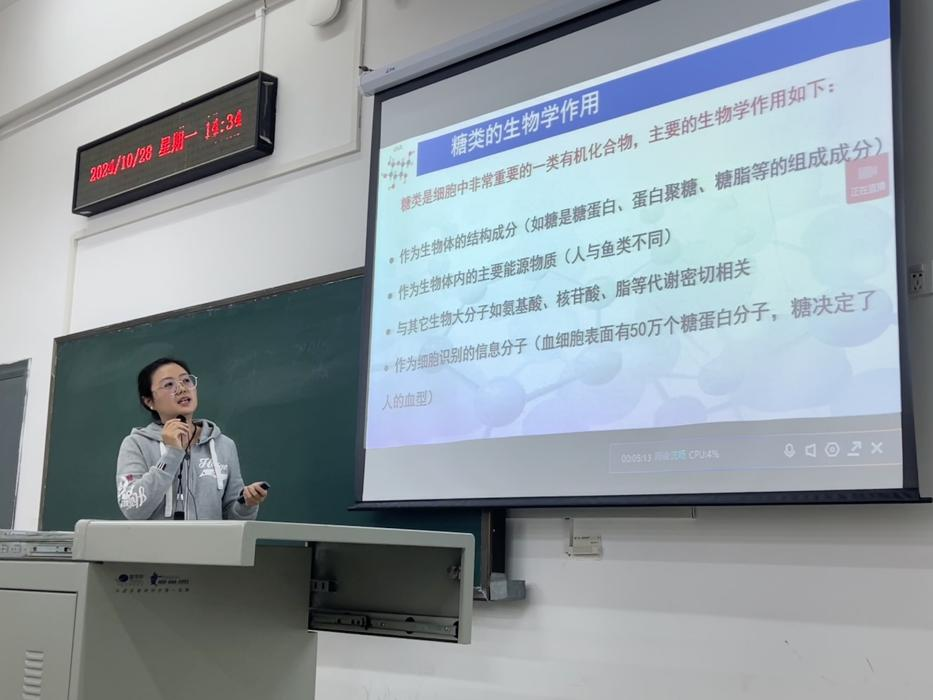 10月28日下午,2024年秋季学期课程思政示范课《基础生物化学B》在三教C104开课,伟德国际VICTOR1946何焱老师讲授“糖代谢”章节部分内容,伟德国际VICTOR1946于永耀、曾辉、万世明、朱坤倩等青年教师前来观摩。