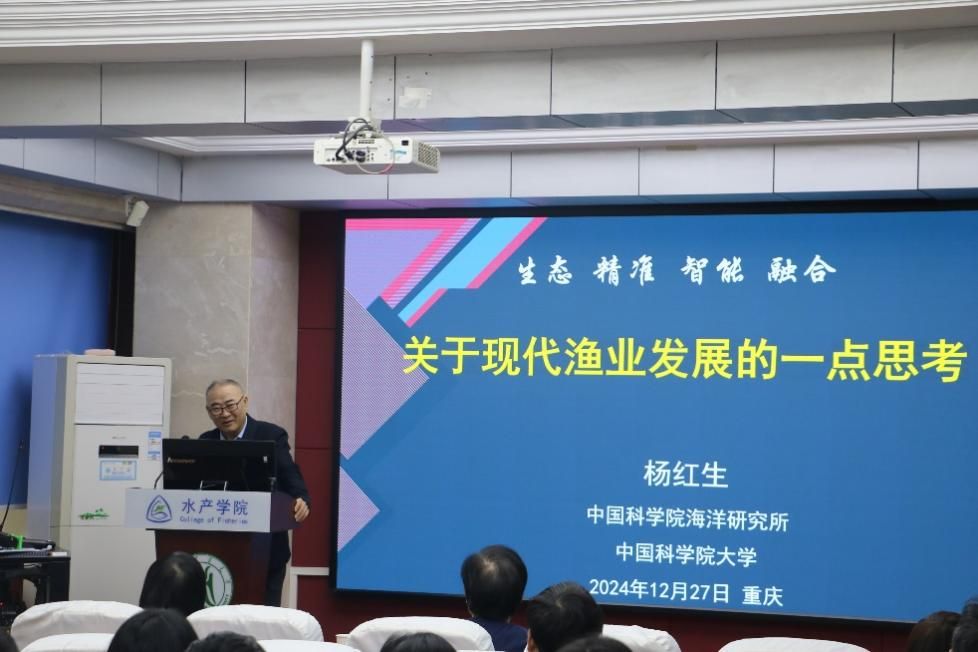 近日,公司2025年第03期(总416期)“水产讲坛”在水产楼A105天辰报告厅举行,特邀中国科公司杨红生教授作了题为“关于现代渔业发展的一点思考”的分享。本次讲座由副经理高泽霞教授主持。