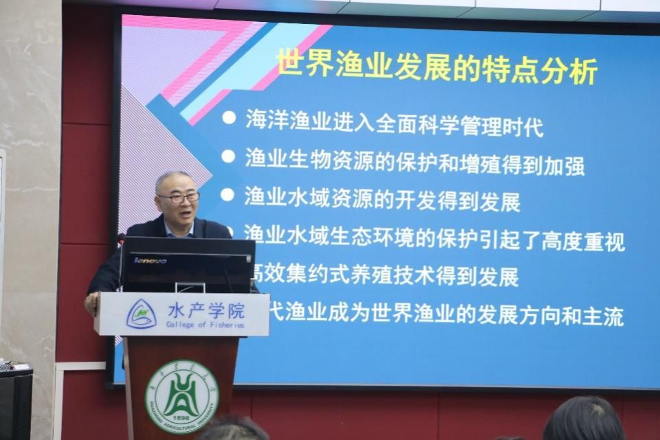 杨红生教授讲解世界渔业发展的特点(李雨洲摄)