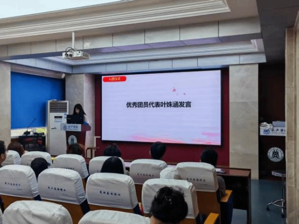 新团员代表陈旭倩在仪式上发言,陈旭倩呼吁全体新团员,以入团作为新的起点,以饱满的热情、昂扬的斗志努力学习、积极进取,用实际行动践行我们的入团誓言,为共青团的事业增光添彩,为实现中华民族伟大复兴的中国梦贡献自己的青春力量!