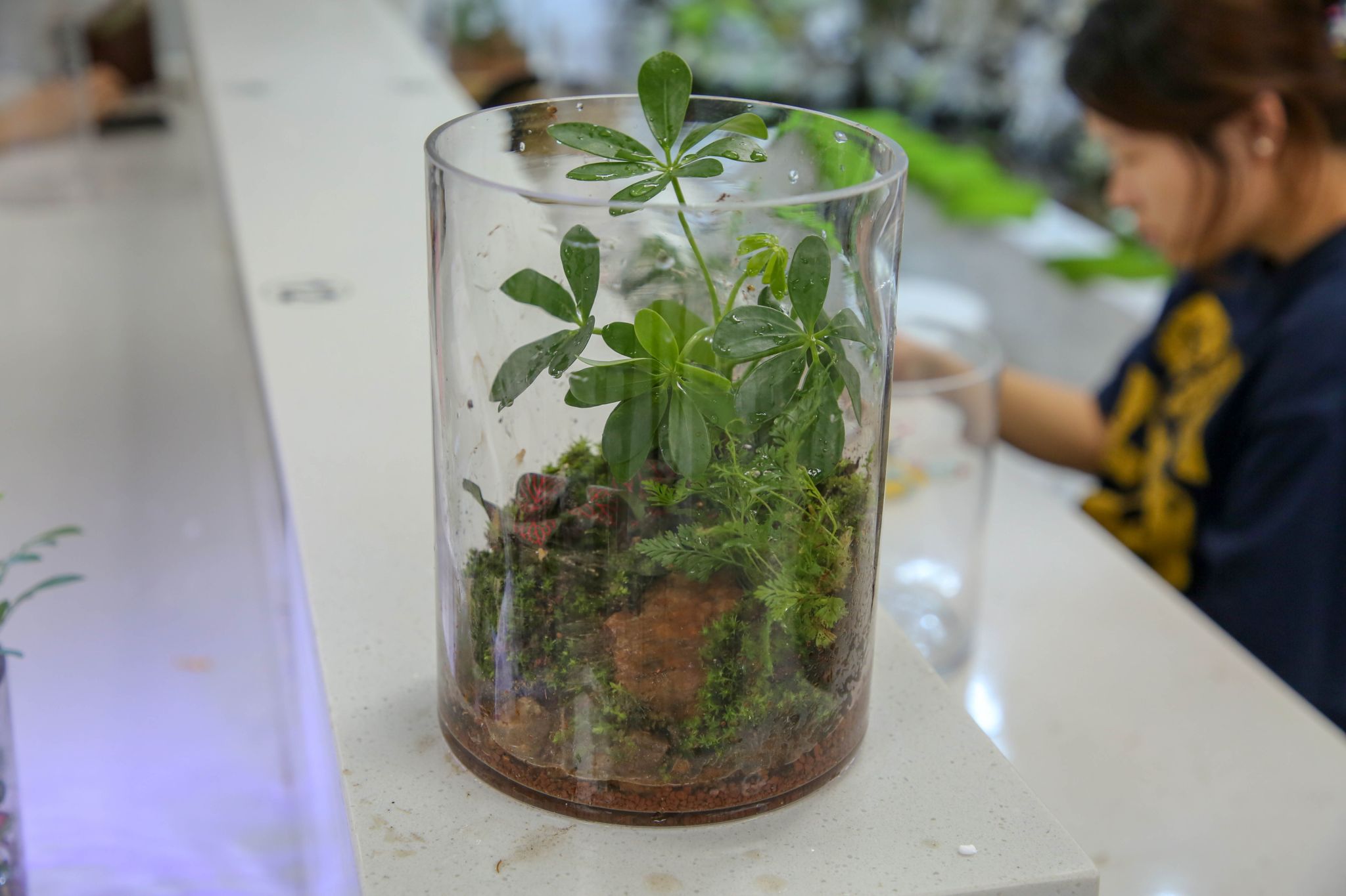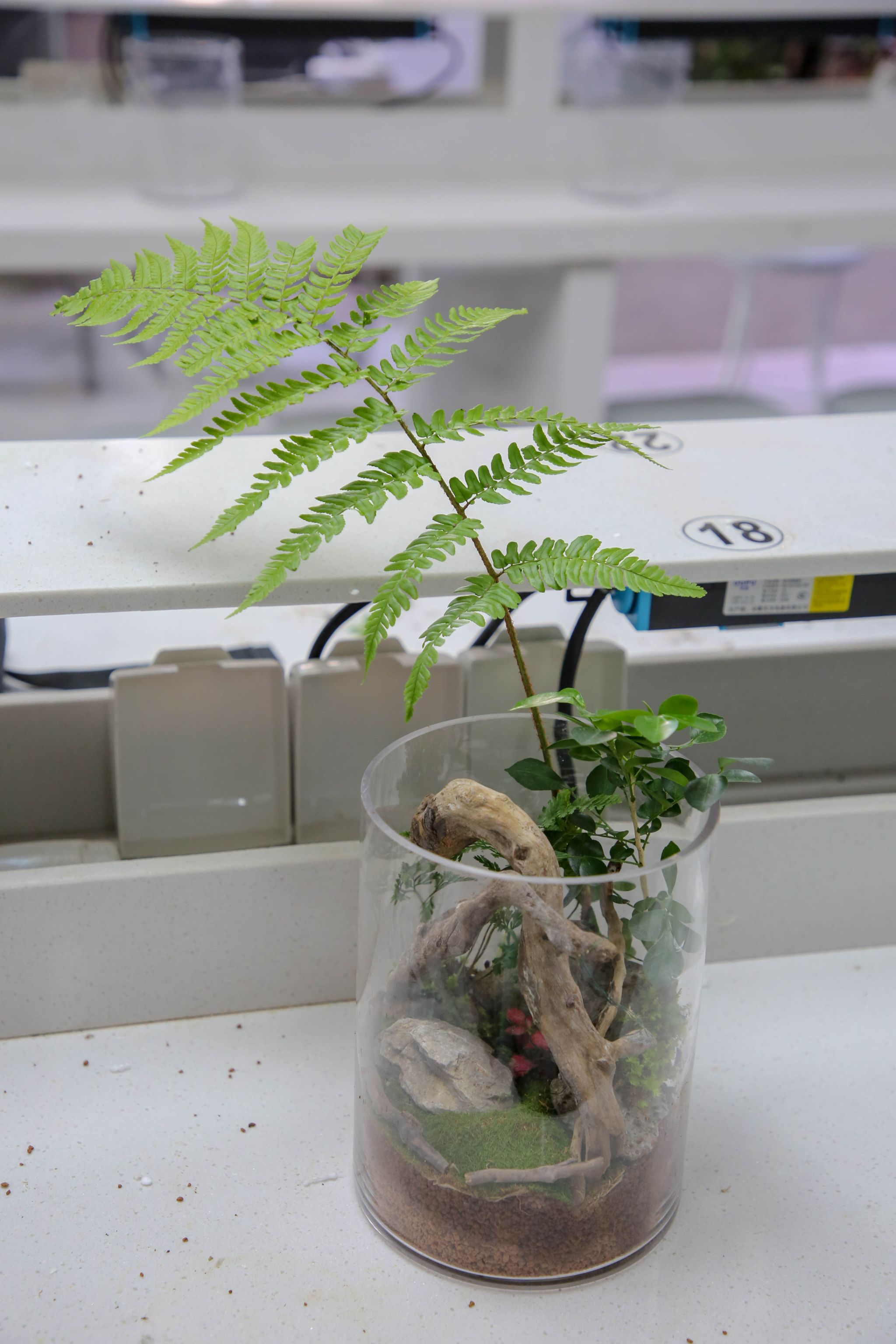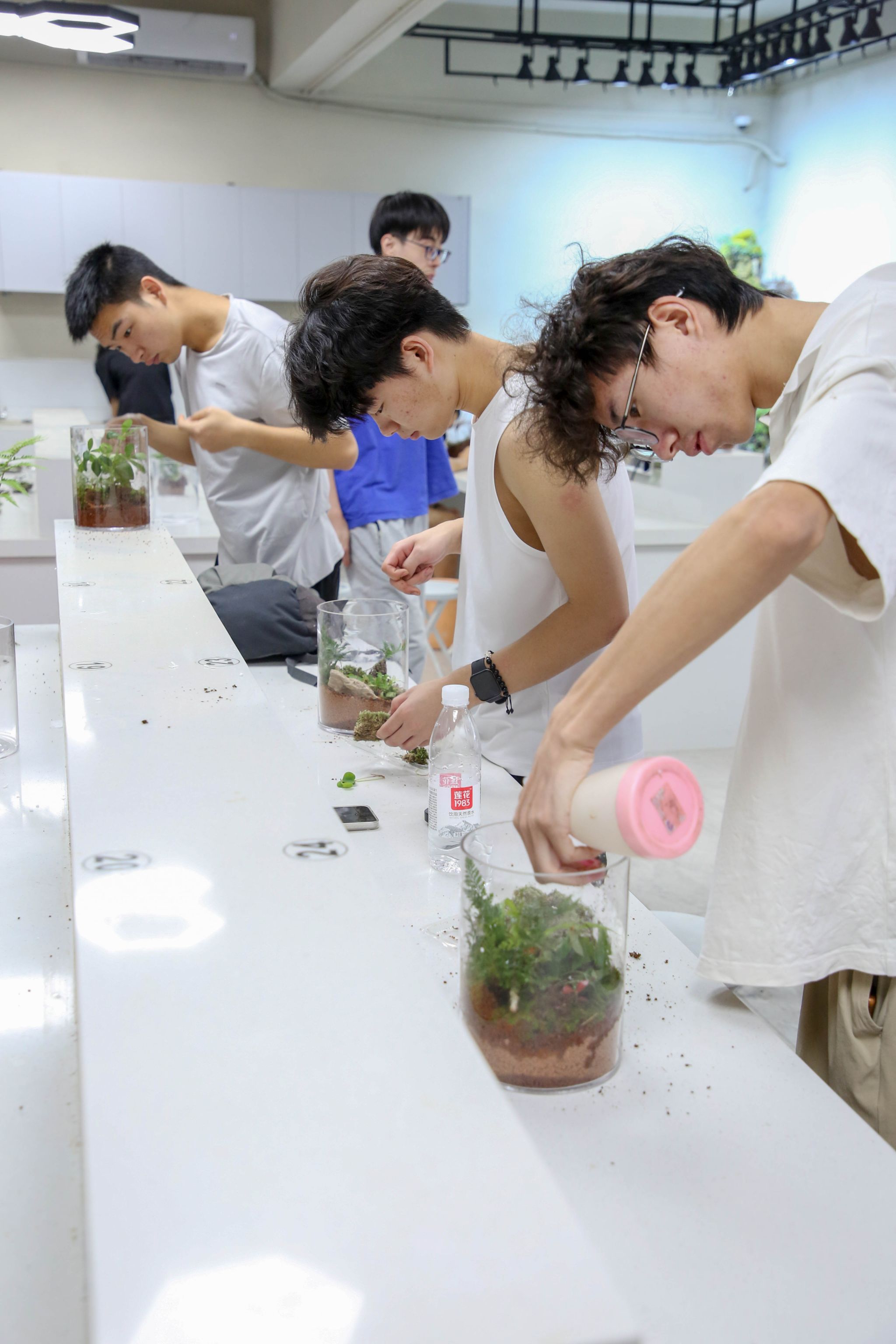 大家充分发挥创意与想象力,将采集回来的苔藓和植物巧妙搭配。他们在玻璃瓶底部铺上一层营养土,再精心摆放上形态各异的小石子,营造出微型的山水景观。接着,用小铲子小心翼翼地将苔藓和植物植入土中,调整好位置,直到满意为止。最后,添上一些可爱的卡通小摆件作为点缀,使生态瓶更加生动有趣。在制作者的巧手下,一个个生态瓶逐渐焕发出勃勃生机,成为了一个个独一无二的微观世界。有的作品仿佛森林一隅,郁郁葱葱;有的宛如高山流水,意境深远;有的又似田园风光,宁静祥和,令人目不暇接,赞叹不已。