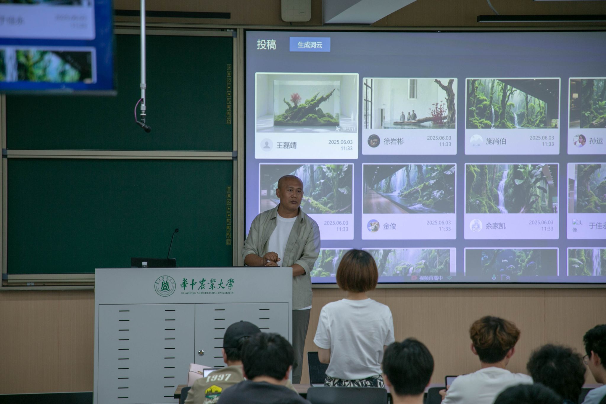 6月3日下午,水族景观规划与设计课程在二教201教室举办主题为“AI赋能水族景观设计的创新路径”的专题讲座与实操教学活动。本次活动特别邀请水族景观设计领域率先探索AI应用的业界专家崔军老师,为同学们带来前沿的行业动态与实践指导。