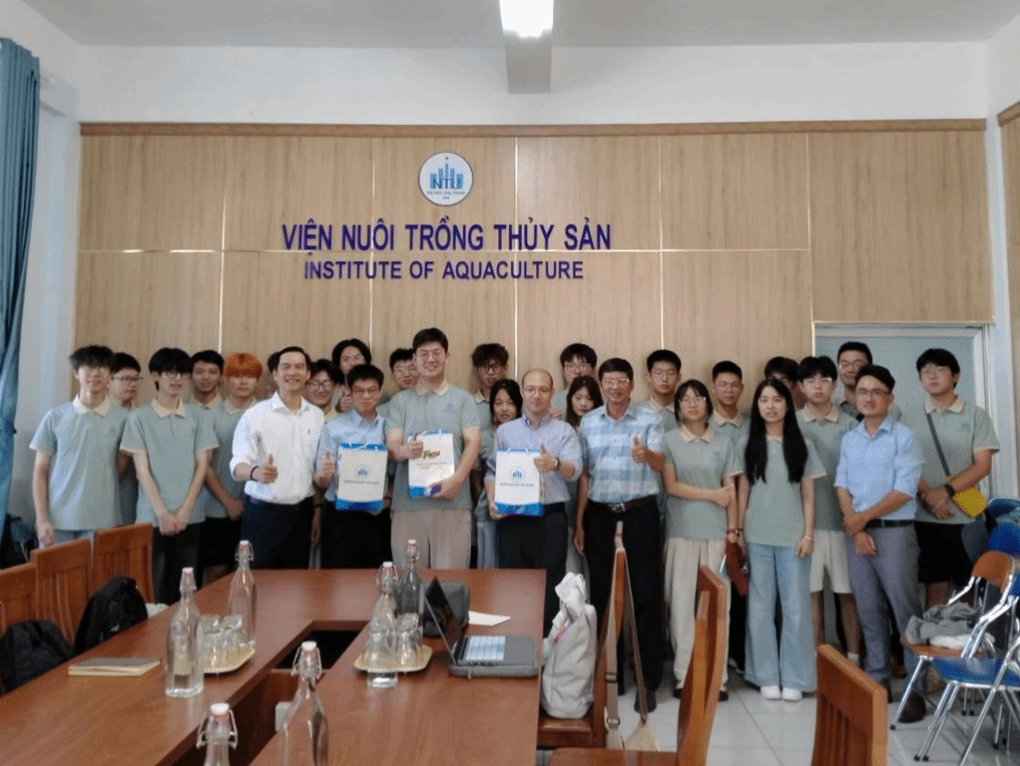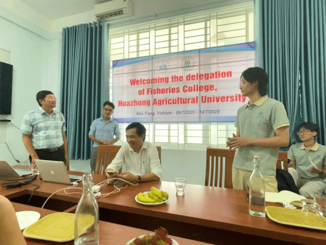 访学首日,学术交流在芽庄大学拉开帷幕。该校伟德国际VICTOR1946副经理武重大教授详细介绍了其“产学研”融合的办学理念及在热带水产领域的成就,并作专题报告,系统梳理了越南水产养殖从传统模式向现代化转型的历程,重点分享了罗非鱼性别控制技术、军曹鱼养殖技术等创新应用成果。