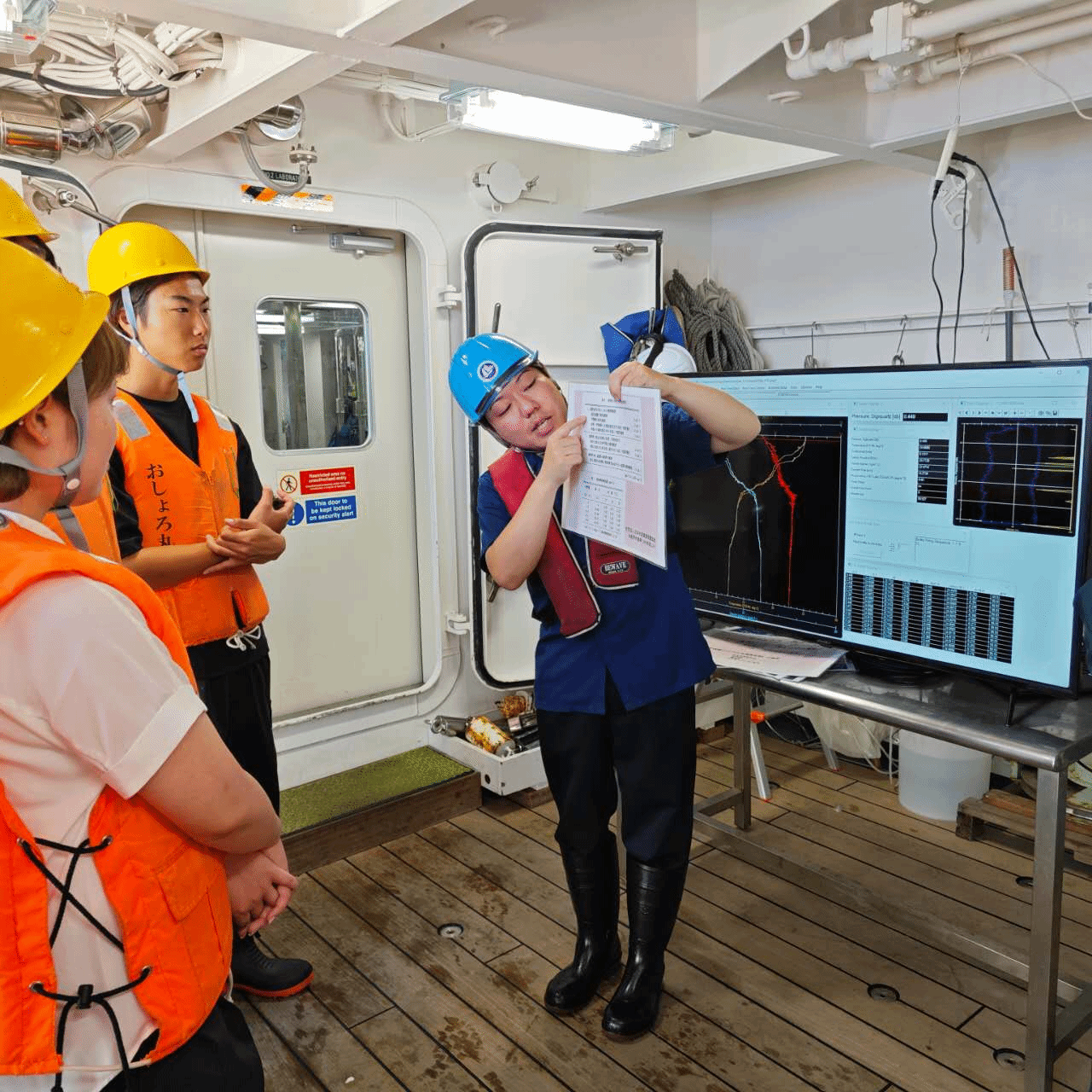 8月24日团队成员在船上接受工作人员的安全教育(洪情雨 摄)