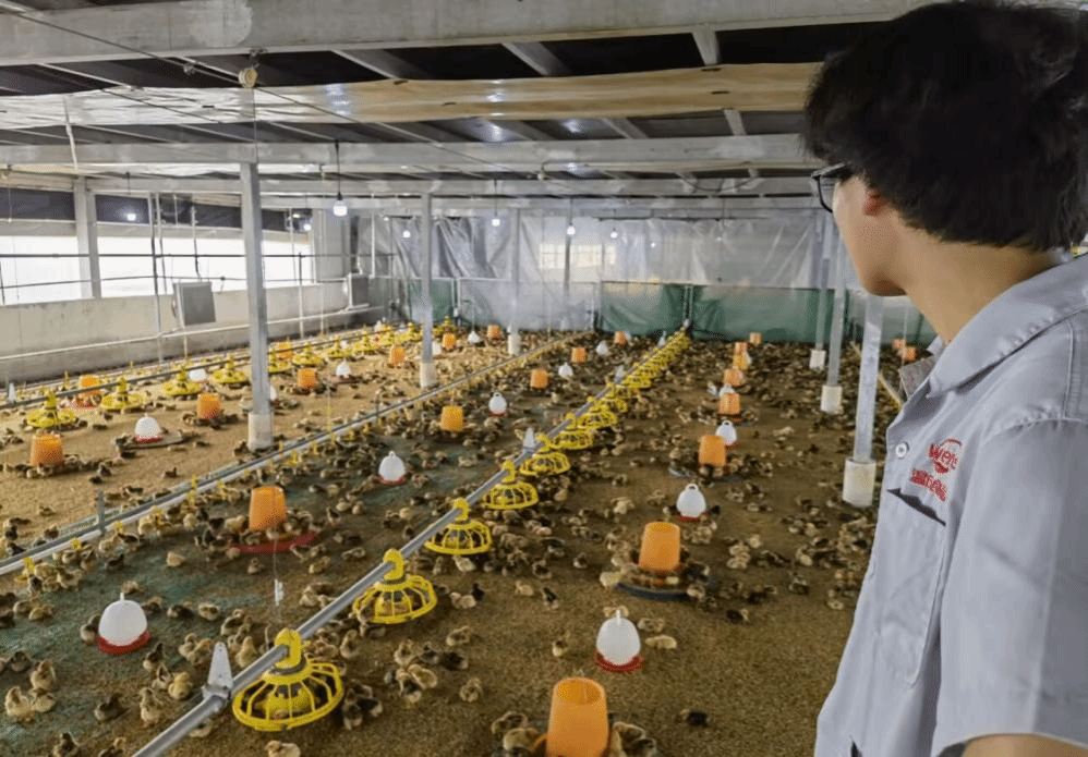 种鸡场与孵化场的考察揭示良种繁育的科技奥秘。种鸡场历经二十余载岁月磨砺,队员们在细雨中穿梭于鸡舍外,可见墙壁上布满岁月留下的斑驳印记。在工作人员引导下,队员们步入鸡舍,映入眼帘的是一排排装满种鸡的铁笼。带领考察团队参观的是一位拥有近三十年丰富经验的资深专家梁晓明师傅,他向团队详细阐述了种鸡场的建设历程、种鸡培育的关键要点,并耐心解答了诸多育种相关的问题。