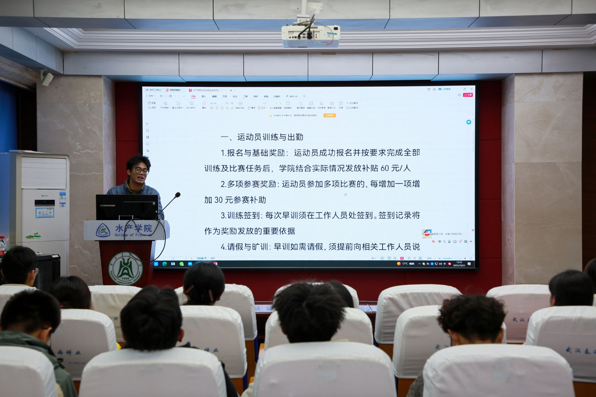 会议最后,孟响老师总结道,希望大家恪守“友谊第一、比赛第二”的原则,以昂扬的斗志、团结的姿态奔赴赛场,在拼搏中书写荣光,在团结中展现风采,“相信在即将到来的运动会上,水产学子必将以饱满的热情与坚定的信念,赛出水平、赛出风格!”