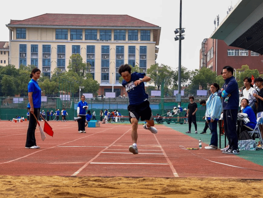 助跑、起跳、腾空、落地,一气呵成。跳远场上,张杰、方德明身体在空中划出优美的弧线,沙坑在落地的瞬间扬起金色尘浪。那一跃,不仅是距离的突破,更是青春的腾飞。