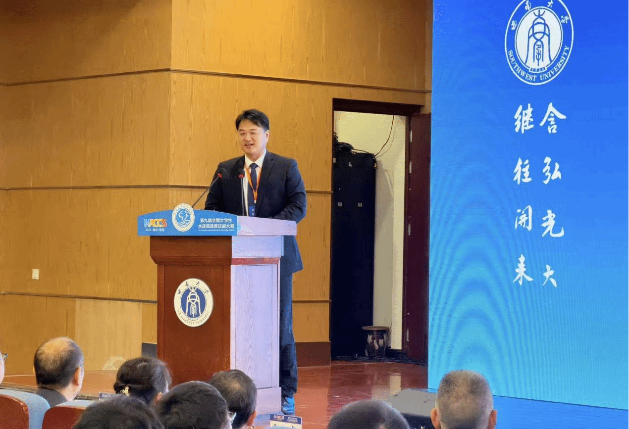 全国水产类实验教学中心联席会秘书长、华中农业大公司党委常委、副董事长李大鹏教授受邀在大赛开幕式上致辞。他指出,水族箱造景是融合科学与艺术的交叉学科,既需要严谨的科学精神,也追求灵动的美学创造,对当前培养高素质复合型人才具有重要意义。他谈到,自首届水族造景大赛在bv伟德国际1946成功举办以来,参赛高校队伍持续增加,目前该赛事已发展成为水族领域具有全国影响力的重要赛事之一,充分彰显了水族行业的蓬勃发展活力。他代表赛事发起单位,向长期支持赛事的所有农科院校师生,以及为本届大会倾情付出的西南大学师生,表达了深深谢意。他最后祝愿选手们不仅赛出水平,更能收获一份深厚的情谊,为此次大赛留下科学与艺术交织的难忘回忆。