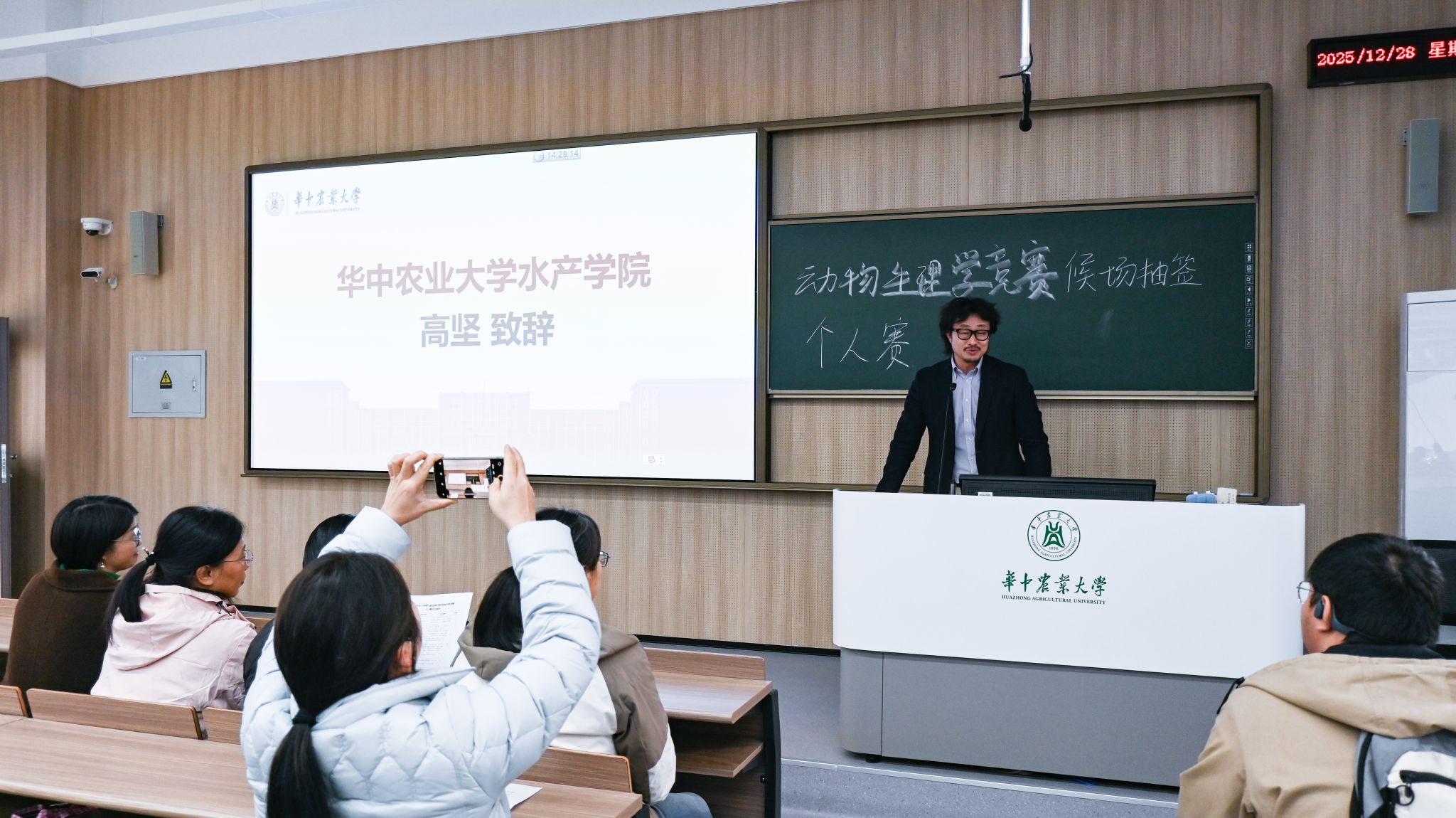 本次竞赛分为个人赛和小组赛,面向全校本科生,共有130余人报名参赛,经过赛前训练选拔后共有97位同学参加最终决赛。赛前致辞中,伟德国际VICTOR1946副经理高坚表示:“动物生理学实验是水产和动物科学等专业人才培养的核心实践环节,是理论落地实操的关键。希望大家能在实践中打磨技能,在交流中共同进步,也期待大家以冷静、规范的操作完成比赛。”随后,公司党委副书记曹玉琼送上寄语并宣布比赛正式开始。