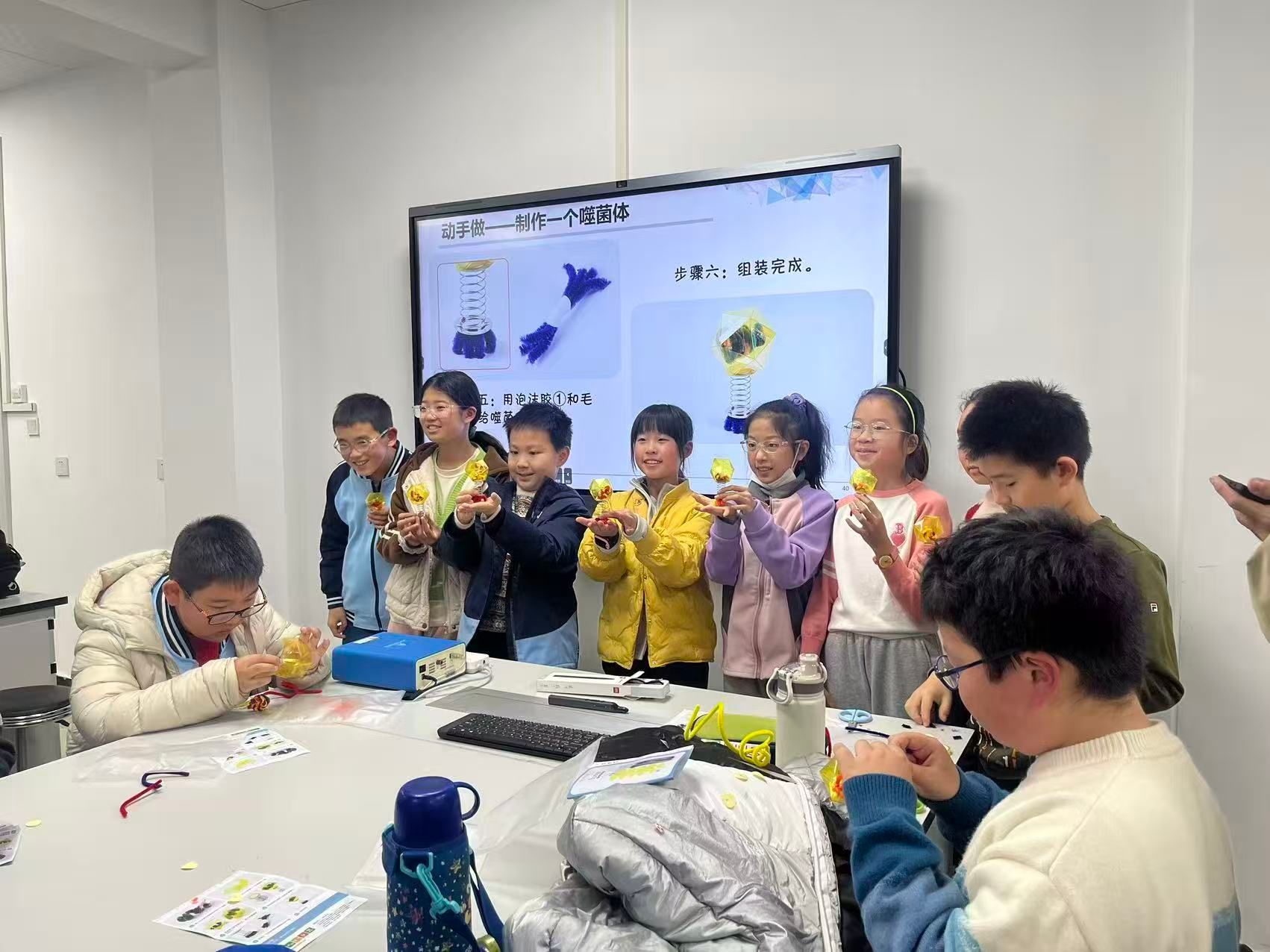 经过一番精心制作,一个个形态各异、创意十足的噬菌体模型新鲜出炉,每一件作品都凝聚着孩子们对微观世界的想象。孩子们纷纷举起自己的作品进行展示,脸上洋溢着满满的成就感与自豪感。