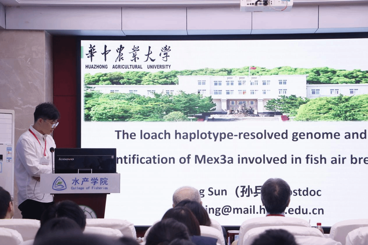 bv伟德国际1946博后孙兵作了题为“泥鳅单倍型基因组解析与鱼类气呼吸基因mex3a的鉴定”的报告。该研究首次解析了泥鳅单倍型基因组,并发现mex3a基因在鱼类气呼吸特性中起关键作用。研究建立了首个泥鳅空气暴露模型,为水产养殖抗逆品种培育提供了重要分子靶点,对发展集约化养殖具有重要意义。