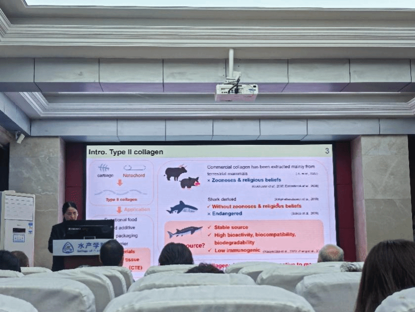 北海道大学Yasuakl TAKAGI教授以胶原相关材料在组织工程及水产加工领域的研究为主题,通过介绍胶原蛋白分子在自然 pH 条件下自组装成纤维的过程,包括体内外不同环境下的变化情况,阐述了细胞与胶原纤维相互作用的机制。展示了细胞培养、组织修复、细胞分化、人工关节应用、水产加工方面的研究内容与成果。