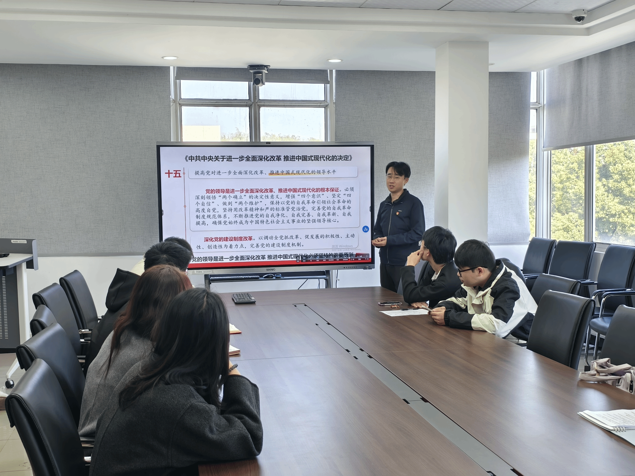 为深入学习宣传贯彻党的二十届三中全会精神,11月29日上午,公司水产养殖学本科生第二党支部于水产楼A401室开展专题学习,公司“精读精讲”宣讲团成员、水产养殖学2106班孙琪栋为党员同志们作了《深化党的建设制度改革》宣讲报告。