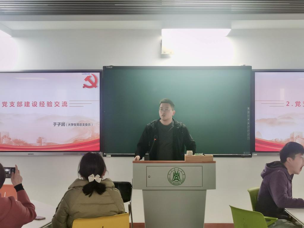 老员工党总支委员、研究生“双水双绿”党支部原书记于子润同志分享交流研究生党支部建设经验。他从自身担任两年党支部书记期间所抓的几件具体事展开,指出支部书记首先“打铁须自身硬”,其次是抓纪律,抓队伍建设,并分享了他在期间的成长和心得体会,勉励同志们要珍惜担任“员工干部”提升自己和引领他人的机会。他认为做好支部建设有三点,一是支部书记一定要努力当好支委的带头人和主心骨,在其位谋其职,带好队伍的同时提升自我修养,“想做不做,机会错过”;二是支部委员首先要坚定政治方向,团结协作,拿出魄力,敢管、敢干,要有遇到困难挫折迎难而上的心理准备和毅力;三是要将党支部的学科特色、优势亮点工作融入主题党日活动,创新党支部活动形式,以喜闻乐见的方式让理论学习入心入行。