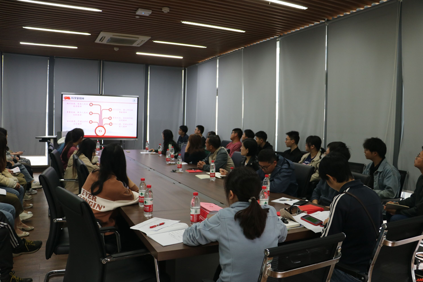 向玉梅同志通过引领支部成员学习陈华癸院士、陈焕春院士、傅廷栋院士、熊远著院士、张启发院士及邓秀新院士的科研经历,生动形象地阐释科学家精神中爱国、创新、求实、奉献、协同和育人精神的具体含义。随后向玉梅同志指出作为新时代的青年,我们要在前人种树的基础上珍惜成果、努力浇灌,积极运用科技创新能力去解决现实的科学问题;坚持爱国主义、集体主义,弘扬爱国精神、科学精神,扭转社会普遍浮躁、急于求成的风气;始终坚持初心,严守学术底线,淡泊名利、潜心钻研;跳出既定框架、坚定前进方向,努力提高自我,始终坚持与祖国同行,为人民服务,为解决我国各领域被卡脖子的难题奉献新青年的力量。