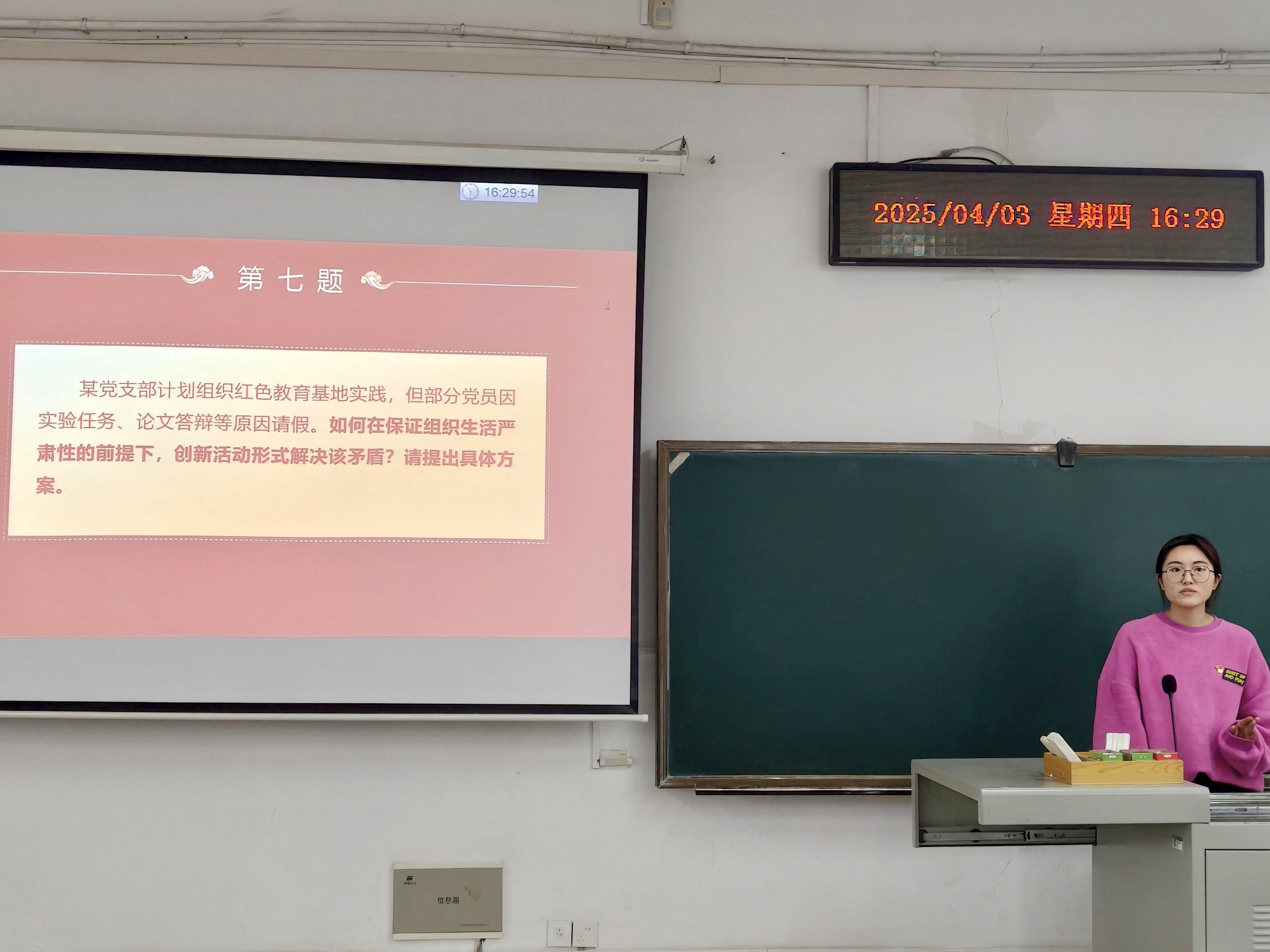 支部实务能力比拼环节,各党支部委员现场抽取题目进行回答。面对各种复杂难题,支委们沉着冷静,凭借自身丰富的实践经验和扎实的知识储备对答如流,充分彰显出过硬的工作素养和应急处理能力。