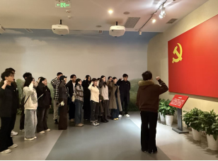 随后,队伍来到中共五大会址纪念馆。在这座标志着党正式建立中央纪律检查机构的历史见证地,董婕同志作为领誓人,带领全体党员面向鲜艳的党旗,举起右拳,重温入党誓词。铿锵有力的誓言在旧址庭院中回响,既表达了对革命先辈的深切缅怀,也传递出新时代研究生党员以科研报效祖国的坚定决心。