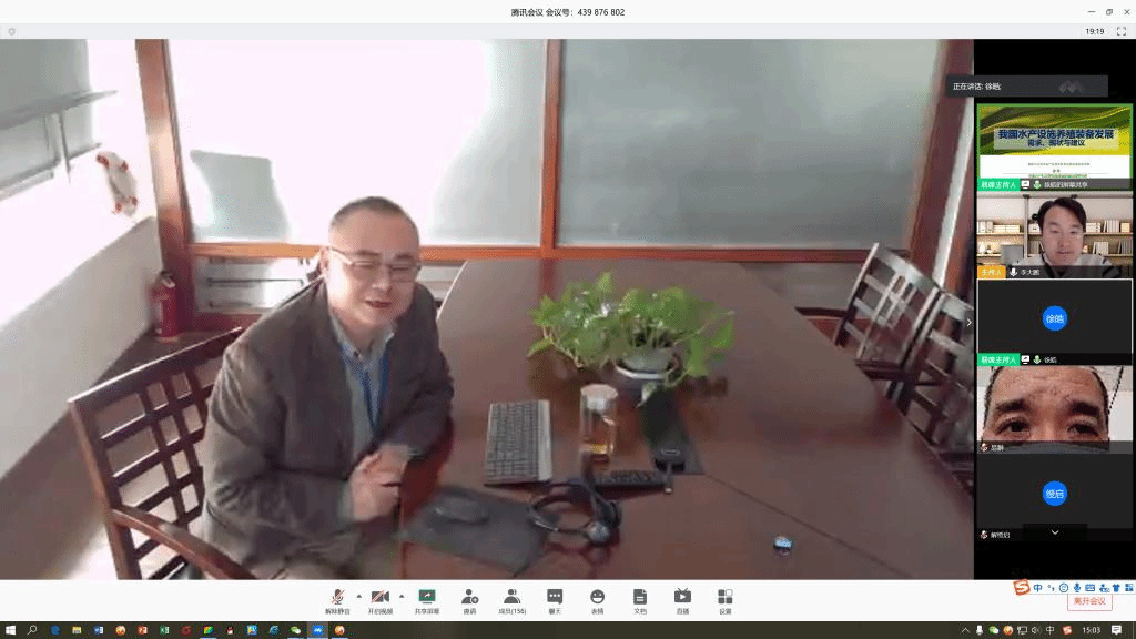 (伟德国际VICTOR1946通讯员 郑建铎)4月2日下午3点,中国水产科学研究院渔业机械仪器研究所所长徐皓做客公司水产讲坛,带来题为《水产设施养殖装备发展需求、现状与建议》的报告。报告由公司李大鹏教授主持,二百余名伟德国际VICTOR1946和工公司的师生在线上参加此次空中学术报告。报告还吸引了来自中科院水生所、上海海洋大学专家以及一些地方水产部门研究人员的参与。