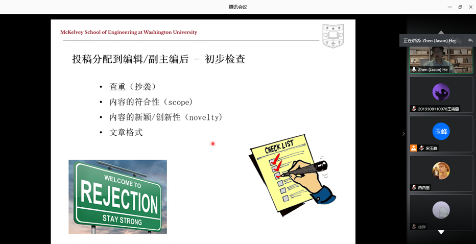 (伟德国际VICTOR1946通讯员 郑建铎 供图 郑建铎)7月30日上午,公司第20008期水产讲坛学术活动通过腾讯会议在线上举行,美国圣路易斯华盛顿大学的贺震教授作题为“如何发表高水平科研论文”的报告。贺震教授目前担任多个期刊的主编、共同主编,拥有丰富的审稿经验,了解审稿的流程。本次报告面向全院师生,由公司教授罗智主持。