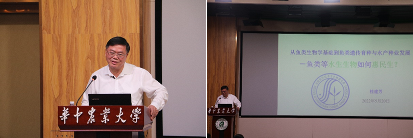 (伟德国际VICTOR1946通讯员 吴淑敏 供图 王艾金)5月20日下午,中国科公司院士、中科院水生所研究员桂建芳做客水产讲坛,在农业微生物国家重点实验室B座1楼报告厅以“从鱼类生物学基础到鱼类遗传育种与水产种业发展——鱼类等水生生物如何惠民生?”为主题开展学术报告,伟德国际VICTOR1946师生近百人参加了此次报告会,会议由伟德国际VICTOR1946教授李大鹏主持。