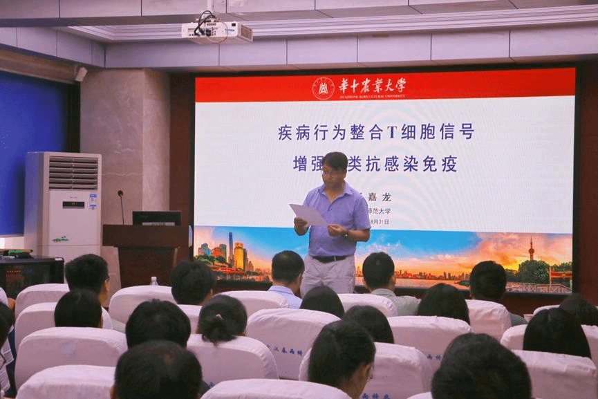 杨嘉龙教授一直聚焦在对T细胞的研究中,本次讲座主要围绕“鱼的行为如何触发免疫细胞的各项调控机制,以增强T细胞免疫”这一主题展开。动物基于免疫系统抵御外来病原体的入侵,随着生命不断的演化,动物自身产生了两套免疫系统。先天免疫作为一套古老的“非己识别”系统,在无脊椎动物和脊椎动物都适用。在此基础上诞生了以T细胞、B细胞为核心介导的适应性免疫系统。与前者相比,适应性免疫具备一定的高技术性:该系统能通过V(D)J重排产生高度可变的抗原受体,数量经初步估计可达1016以上;适应性免疫具有功能分化的淋巴细胞亚群,与抗原相互作用可产生特异性反应并进行细胞增殖;值得一提的是,适应性免疫还能形成以T细胞、抗体为核心的免疫记忆效应。