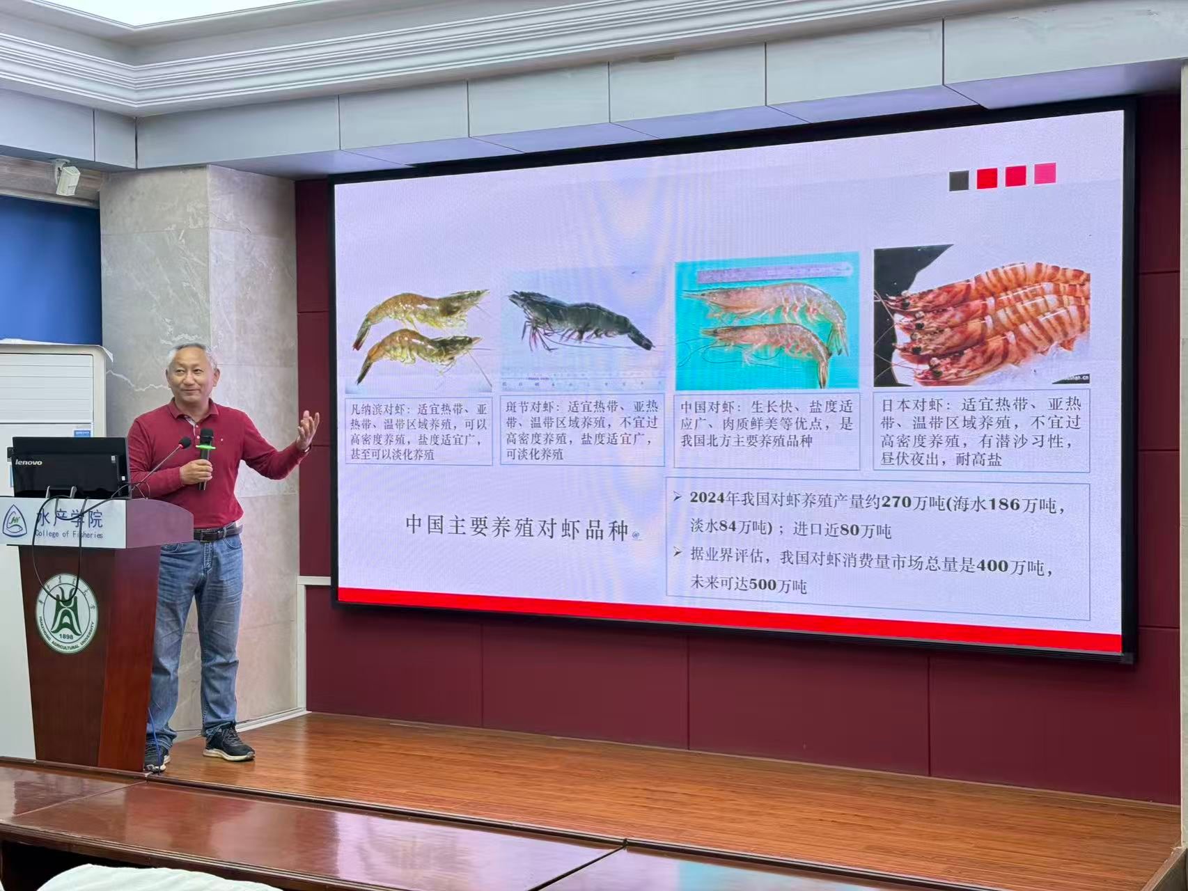 近日,公司2025年第10期(总420期)“水产讲坛”在水产楼A座105报告厅举行,特邀张家松研究员作专题学术报告,报告题目为“中国对虾工业化养殖现状和展望”。张家松研究员详细介绍了中国养殖对虾现状与工业化趋势、国外工厂化对虾养殖情况、我国工厂化养殖对虾情况、小棚养殖技术等内容。