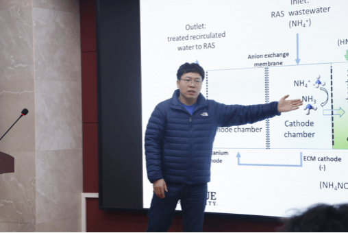 互动环节中,师生围绕“膜技术处理能力”“生物絮团投喂方式差异”“系统能源优化”等问题提问,朱泽博士对师生提出的问题逐一解答。