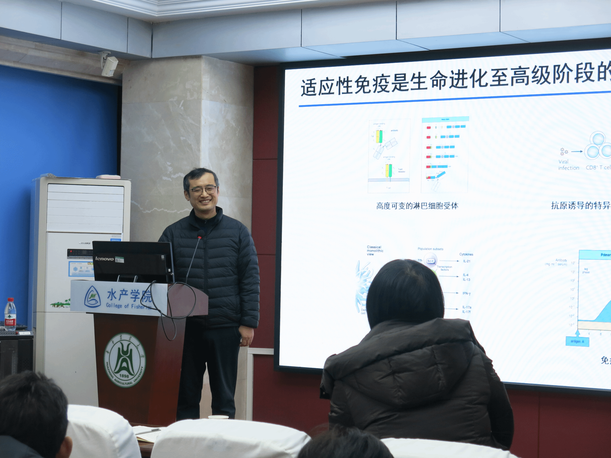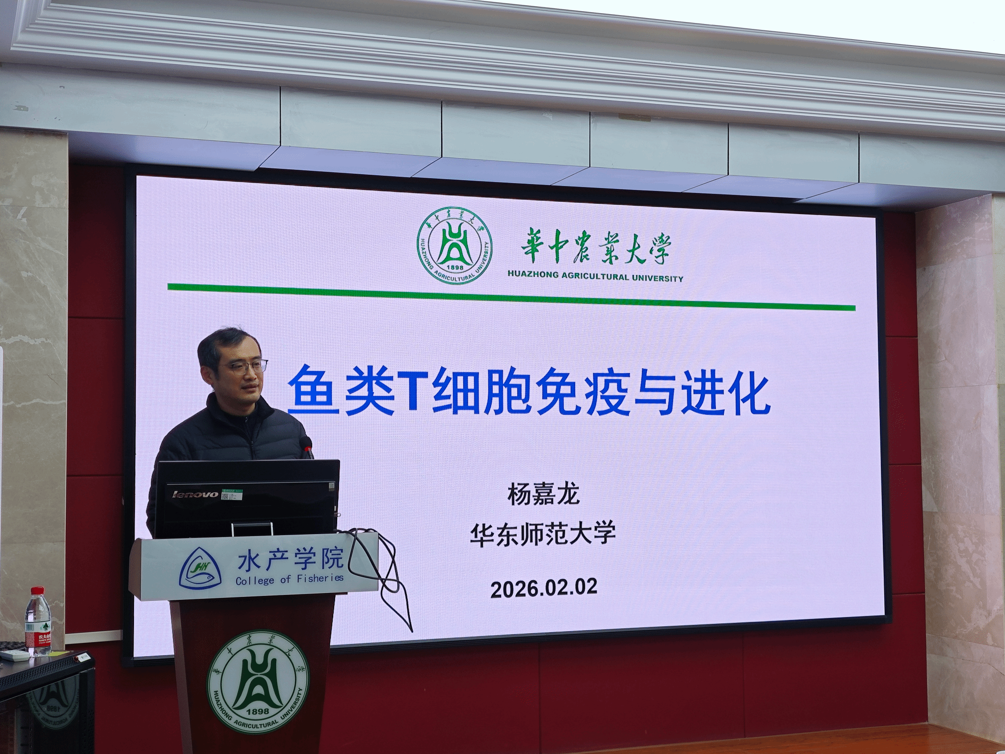近日,公司2026年第3期(总435期)“水产讲坛”在水产楼A105报告厅举行。本次讲座特邀华东师范大学教授、博士生导师杨嘉龙教授主讲,作题为“鱼类T细胞免疫与进化”的专题学术报告,系统分享了其团队在脊椎动物T细胞谱系发生、免疫功能及调控机制研究领域的系列突破性成果。本次讲座由伟德国际VICTOR1946经理张永安教授主持。