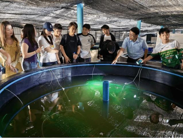 师生在水产养殖工厂进行实地调研