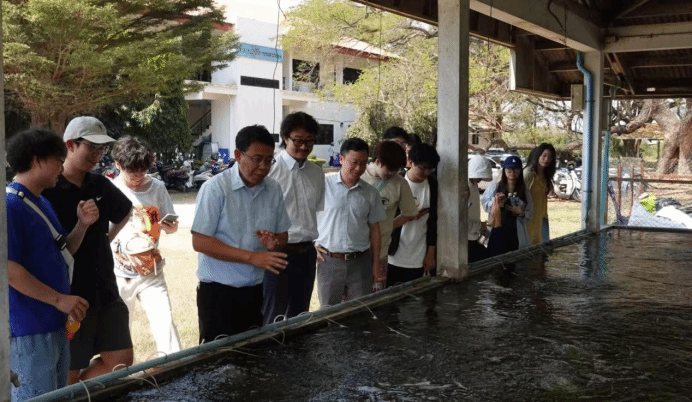 1月28日,访学团实地考察了曼谷周边的水产养殖工厂与农场。伟德国际VICTOR1946专家与一线养殖人员共同向我们介绍了泰国水产养殖业发展现状,重点讲解了罗非鱼、南美白对虾、罗氏沼虾等品种全雄化育种的工作情况,华中农大师生认真聆听、细致记录;在互动交流环节,双方围绕红罗非鱼性别控制、南美白对虾与罗氏沼虾混养模式等关键技术与研究方向展开深入探讨,为未来进一步合作奠定了良好基础。